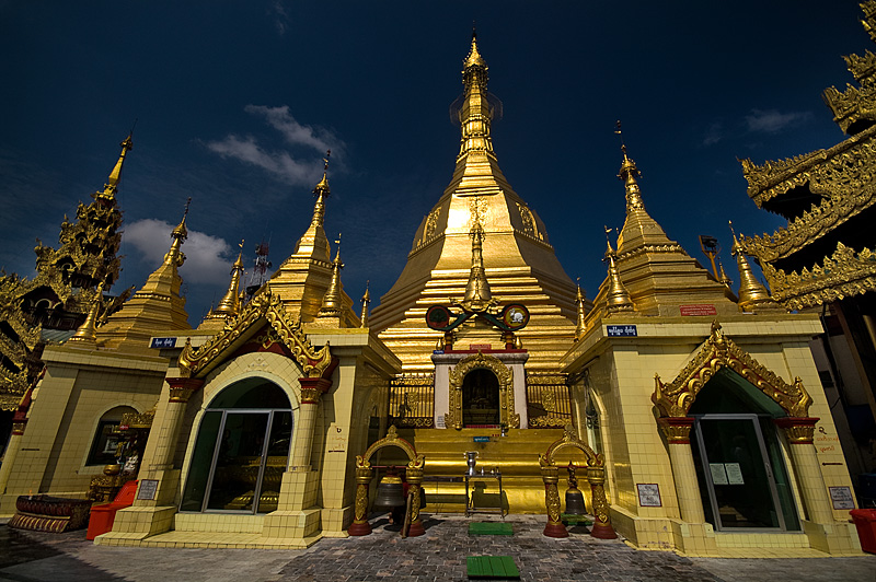 Frisch ausgeruht geht es am Morgen nach unserer Ankunft ins Zentrum der Stadt. Inmitten eines großen Kreisverkehrs befindet sich die Sule Pagode. Die zweitwichtigste Pagode der Stadt ist eine Art Alltagstempel und wesentlich weniger pompös als die Shwedagon-Pagode die wir später noch besichtigen werden. Hier treffen sich die Gläubigen um ihren religiösen Pflichten nachzukommen. Die hier gesprochenen Bitten und Gebete beziehen sich meist auf Probleme des Alltags. An diesem Ort werden wir erstmal damit konfrontiert das jeder Tempel in Myanmar ausschließlich barfuß betreten werden darf. Am Beispiel der goldenen Pagoden erkennt man den Stellenwert des Buddhismus, trotz einer weitgehend verarmten Bevölkerung werden keine Kosten und Mühen gescheut solch prächtige, goldüberzogene Denkmäler des Buddhismus zu errichten. Wie kaum ein anderes Volk identifizieren sich die Birmanen mit dem Theravada-Buddhismus, sie verstehen sich als Lieblingsvolk Buddhas und leiten sogar ihre Herkunft von einem Zweig seiner Sippe, den Shakya ab.