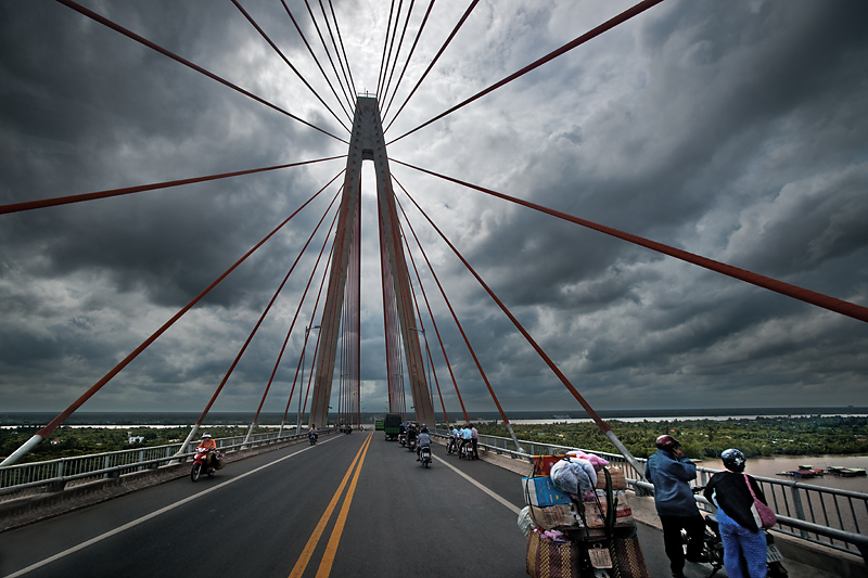 Ein Tagesausflug bringt uns in das Mündungsdelta des Mekongs. Von seiner Quelle in Tibet legt er über China, Burma, Laos, Thailand und Kambodscha eine Strecke von über 4000 km Länge zurück, ehe er im Süden von Vietnam ins Meer mündet. Das Mekong Delta ist heute die Reiskammer des Landes. Während der Zeit des strengen Sozialismus produzierten die Bauern im Delta gerade genug für ihren Eigenbedarf und machten sich nicht die Mühe die Ernte auf den Markt zu bringen. Nachdem im Jahre 1986 eine Reprivatisierung der Landwirtschaft eingeleitet wurde, verbesserten sich die Erträge Jahr für Jahr. Inzwischen ist Vietnam nach Thailand der zweitgrößte Reisexporteur der Welt.